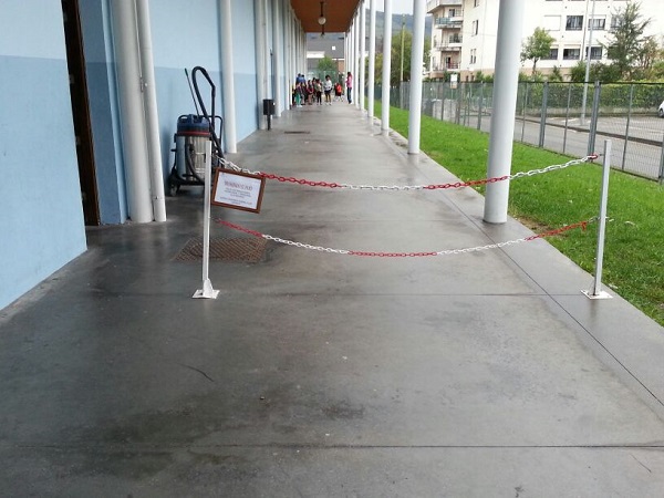 Después de 20 minutos se personó la ambulancia, la cual no pudo acceder a las instalaciones deportivas. La puerta de seguridad para acceso a vehículos carece de vado y de señalización especifica indicando que es una “puerta de emergencia” por lo que había vehículos aparcados que impedían el acceso de cualquier transporte, solo una línea amarilla pintada el suelo prohibía el aparcamiento de vehículos. Dentro de las instalaciones (otra parte por la que tendría acceso una ambulancia) han colocado una cadena de plástico con un cordón de acero soldado, imposibilitando el acceso de cualquier vehículo y ambulancia hasta los vestuarios.